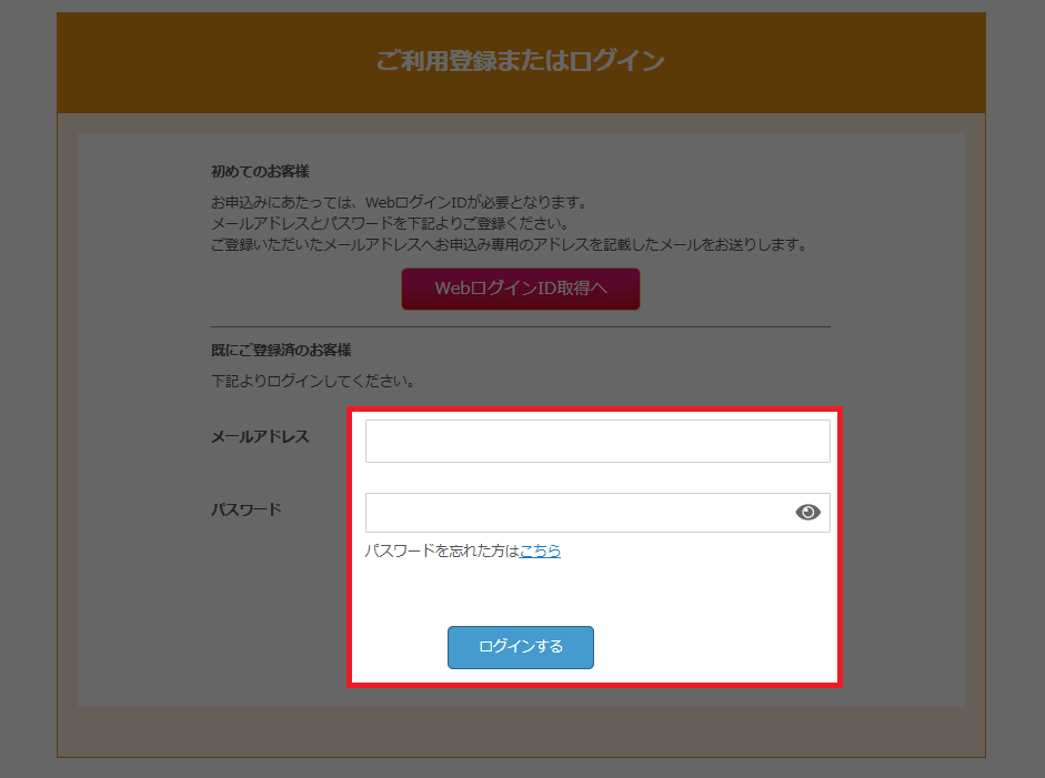 アカウントの認証情報(メールアドレスとパスワード)を入力し、ログインをするボタンをクリックします。