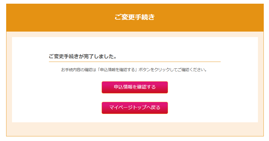 変更が完了しましたら、ご登録のメールアドレス宛に手続き完了のお知らせメールが送信されます。