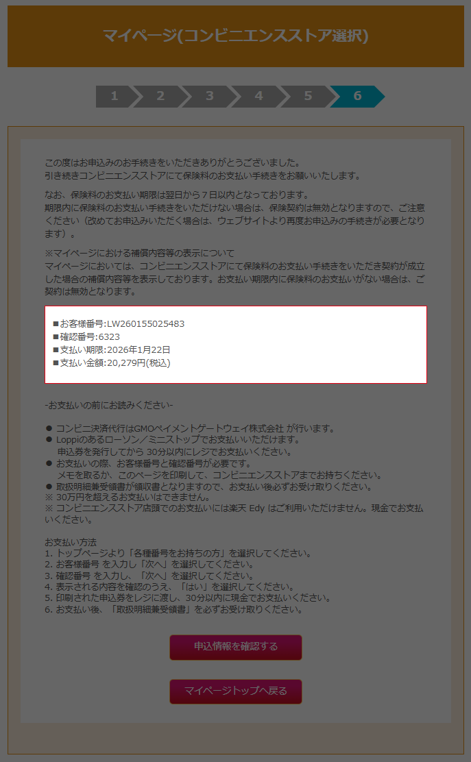 (画像: お申込み完了(コンビニエンスストア決済))