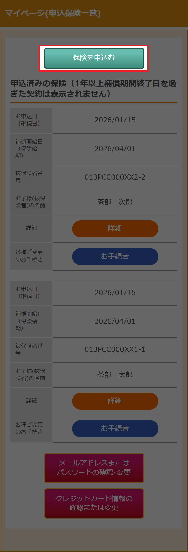 (画像: マイページ(保険契約一覧))